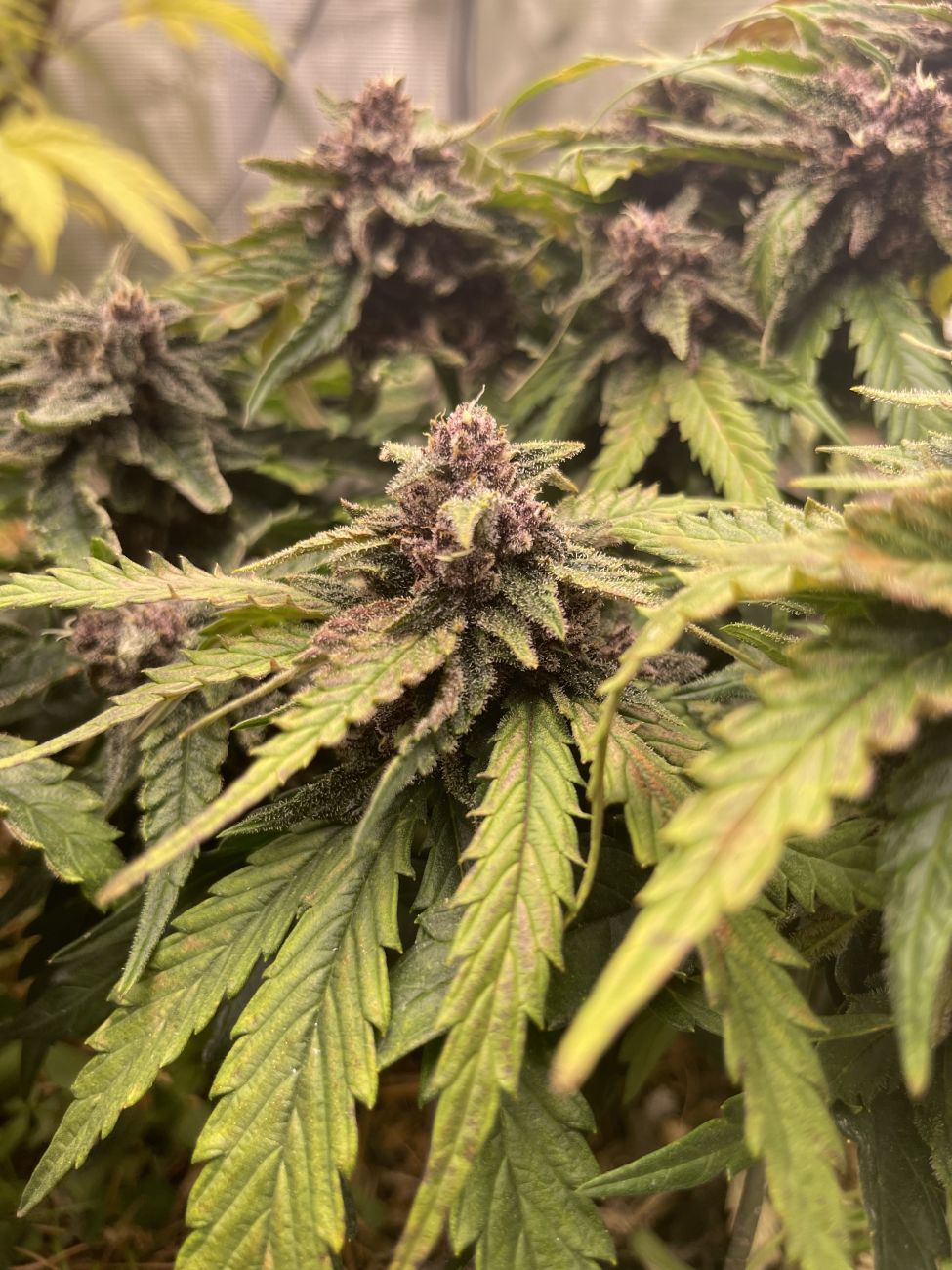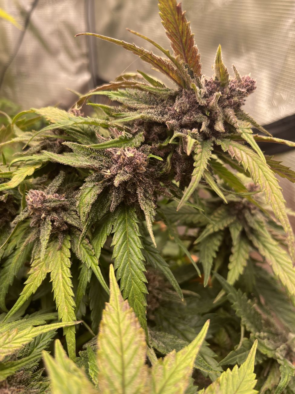 She grows quickly and easily, requiring minimal input while still producing dense, purple-streaked colas coated in frost. Cool temperatures will intensify her color, making her a great choice for outdoor growers in northern climates or indoor setups using LED and late-flower temperature drops. Despite her fast cycle, she yields generously and may need support during late bloom to hold up her heavy, resinous flowers.