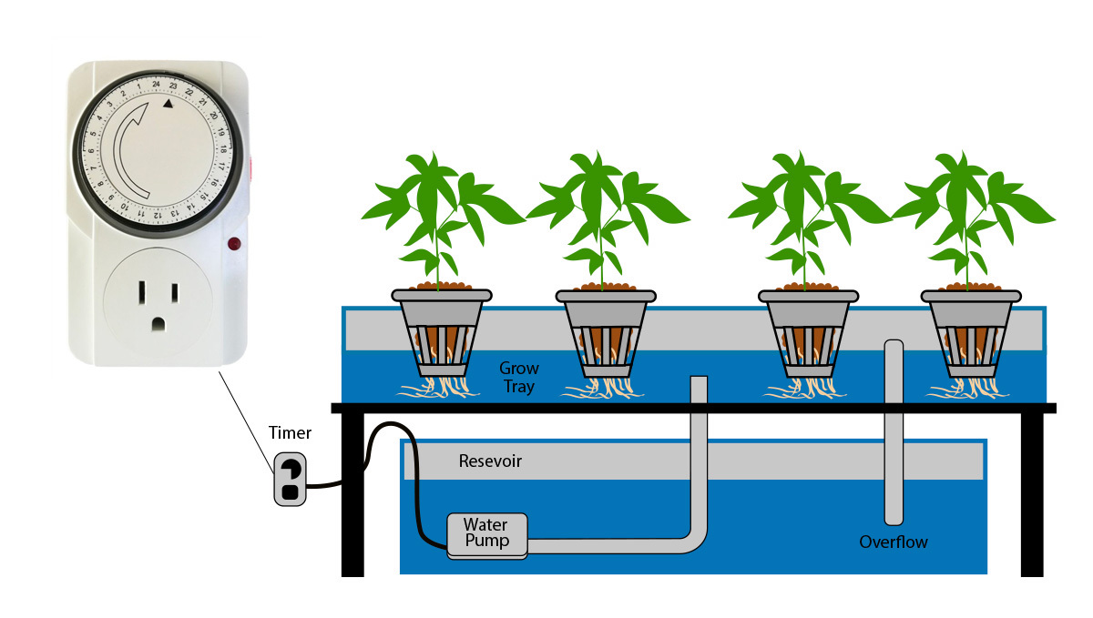 Einer der wichtigsten Faktoren beim Anbau in Hydrokulturen ist die konstante Durchflussrate, also Menge und Häufigkeit der Nährstoffzugabe. Alles muss systematisch und unter Verwendung eines 15-Minuten-Intervalls erfolgen. Die Wahl des Zeitpunkts, zu dem die Pflanzen zu gießen sind und das manuelle Anstecken der Pumpe sind auf lange Sicht weniger effektiv. Besser ist es, 2-5 Mal pro Tag regelmäßig zu gießen. Nur wenn du ein Rezirkulationssystem verwendest, das rund um die Uhr mit Hydroton verwendet wird, ist die Nutzung einer Zeitschaltuhr unerlässlich.