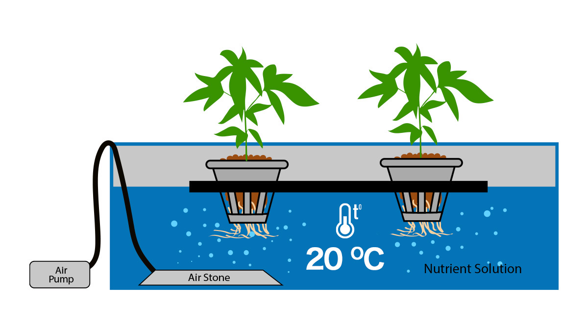 Es ist wichtig, dass das Reservoir, das die Nährlösung speichert, sauerstoffreich und warm zu halten. Es gibt zwei Dinge zu beachten, die die Wurzeln einer Cannabispflanze bevorzugen, wenn es um die ideale Temperatur geht. Temperaturen unter 20 Grad sind für die Pflanzen unangenehm. Alles über 22 Grad Celsius kann Krankheitserreger dazu verleiten, die Wurzelzone zu infizieren.