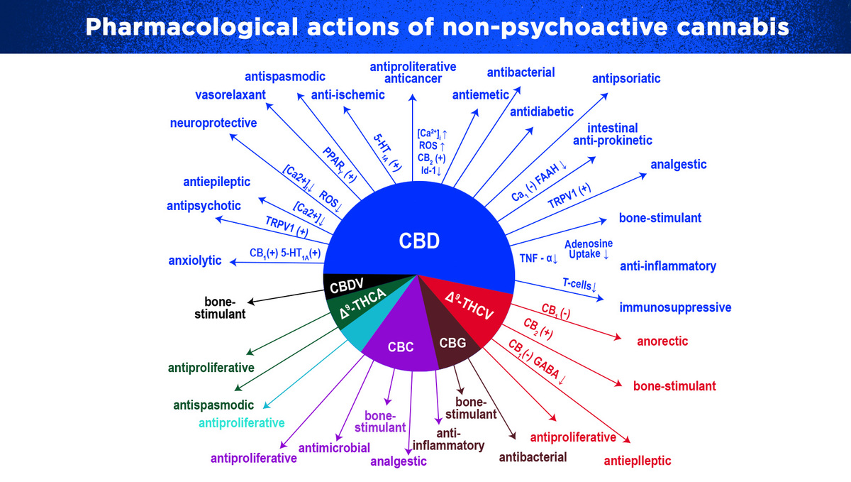 Während THC an die im Körper vorhandenen CB1-Rezeptoren bindet, hat CBD die Fähigkeit, sich an Rezeptoren zu binden, die nicht einmal Teil des ECS (Endocannabinoid-System) sind. Die Rezeptoren binden, um eine Schlüsselrolle im Kampf gegen Schmerzen und Entzündungen zu spielen.