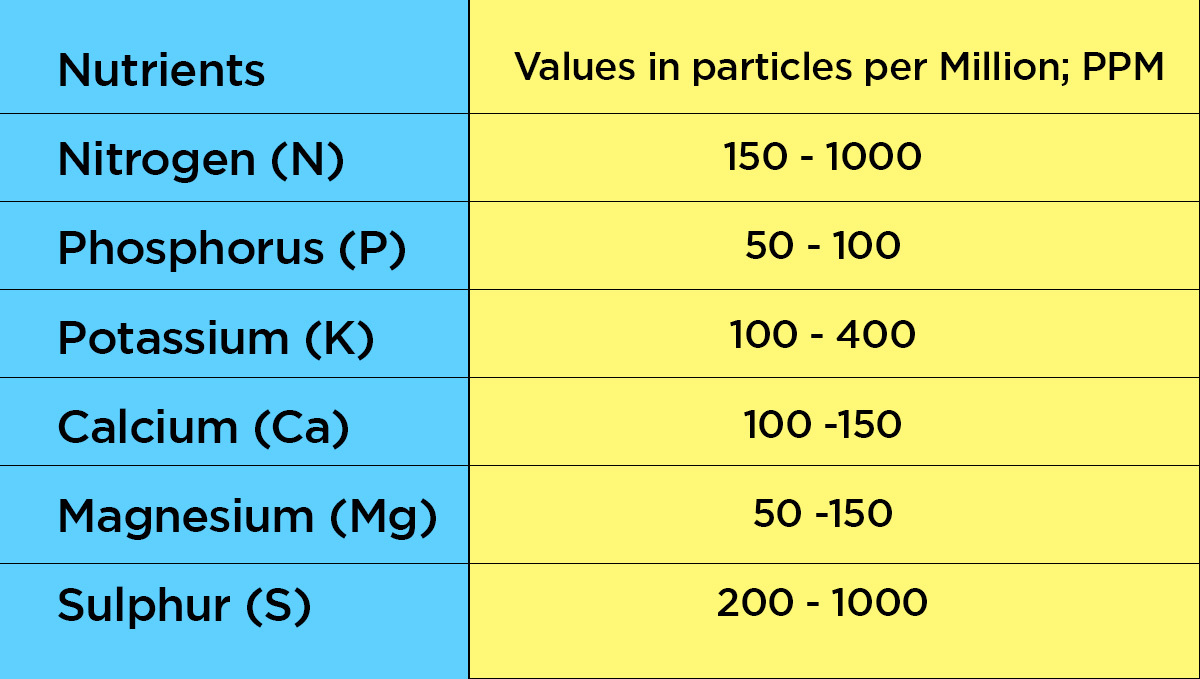 Wie bereits erwähnt, handelt es sich bei der Tabelle um eine allgemeine Richtlinie, die von einer Sorte zur anderen variieren kann. Die einzige Möglichkeit, Partikel pro Million (ppm) zu messen, ist die Messung der gesamten gelösten Feststoffe (TDS) mit einem TDS-Messgerät. Die andere Möglichkeit ist die Verwendung eines EC-Messgeräts (Electircal Conductivitey). Durch die Messung der elektrischen Leitfähigkeit kann man auch indirekt den TDS-Wert oder die Gesamtmenge an Düngemittelsalzen in einer Lösung messen.