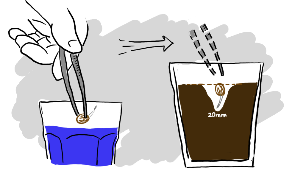 Setzen Sie Ihre Fast Buds Samen sorgfältig auf die Oberfläche des Wassers mit einem Löffel (Vermeiden Sie es mit den Fingern zu berühren). Die Samen werden schweben.
