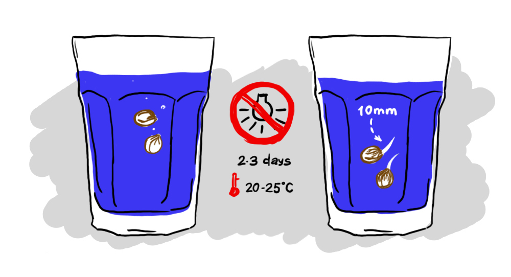 Nach Jahren des Experimentierens an Hunderten von Samen haben wir den einfachsten und effektivsten Weg gefunden, um Samen zu keimen. Bedingungen können variieren, aber nicht viel.