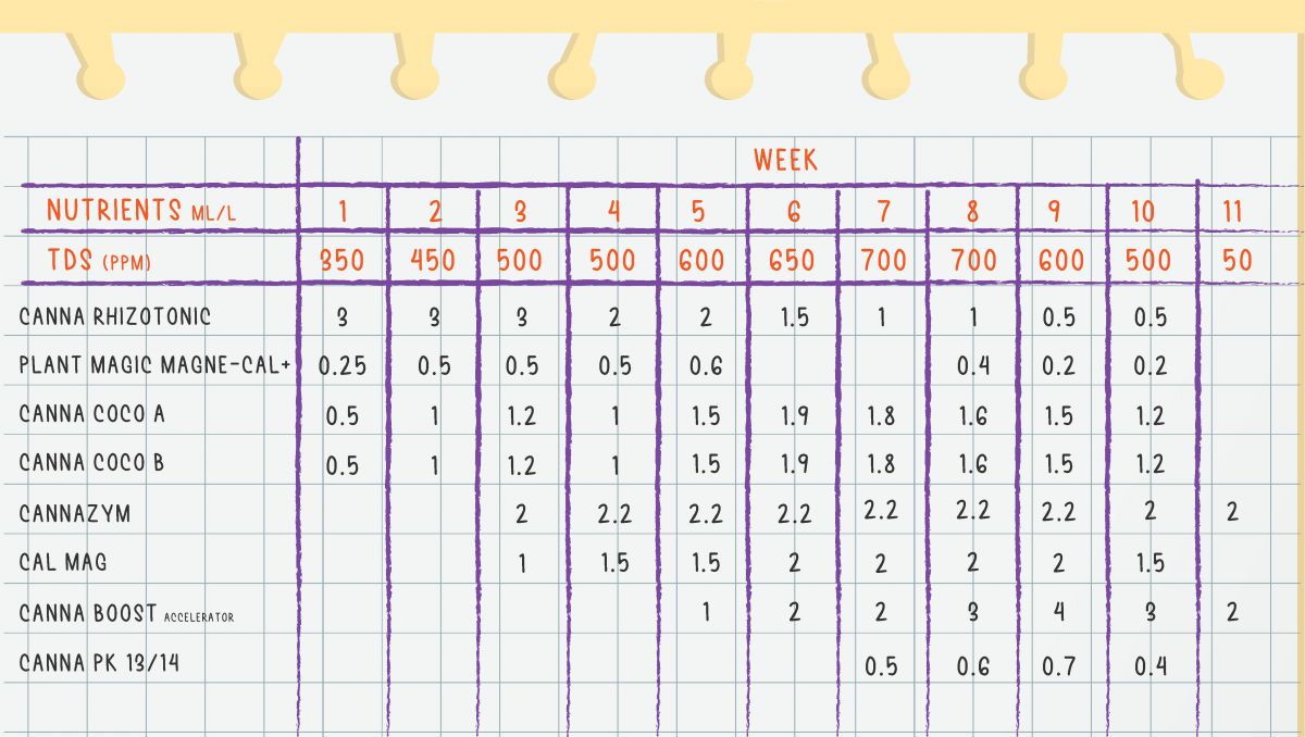 - CANNA Coco A (0.5 ml/l),