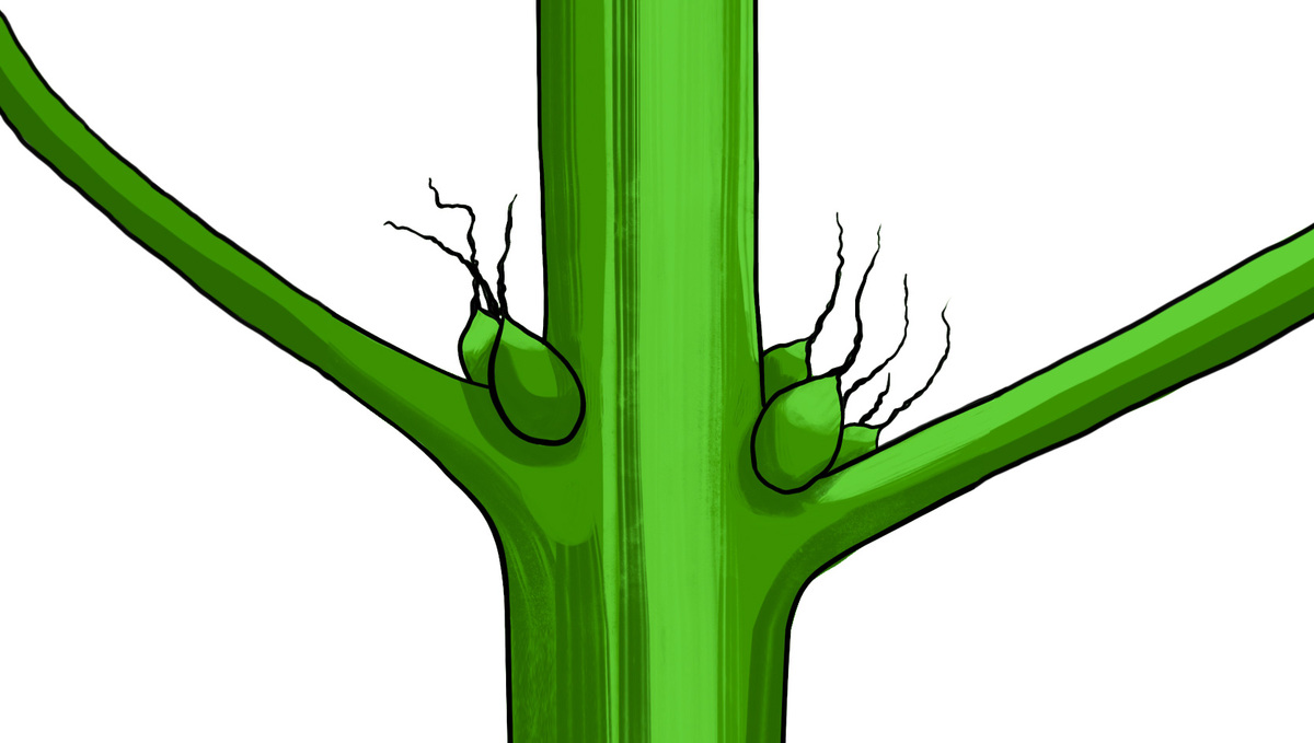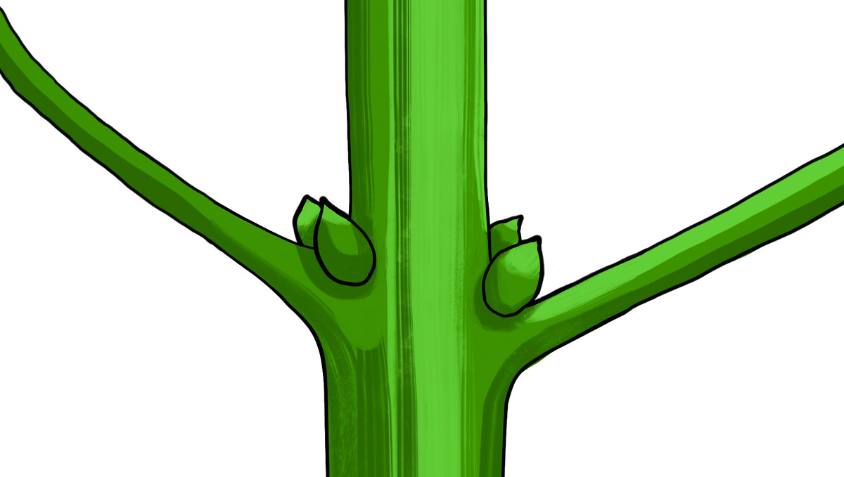 Um zu vermeiden, dass sich hermaphroditische Cannabis-Pflanzen selbst bestäuben, musst du vorsichtig die männlichen Fortpflanzungsorgane, die sich an den Knoten bilden entfernen. Dazu nimmst du einen Pollensack zwischen zwei Fingern und ziehst ihn vorsichtig ab. Dies ist die einzige Möglichkeit, um deine Ernte zu retten. Manchmal wächst der Pollensack deiner Pflanze weiter und manchmal hört er auf, das hängt aber davon ab, was den Stress verursacht.