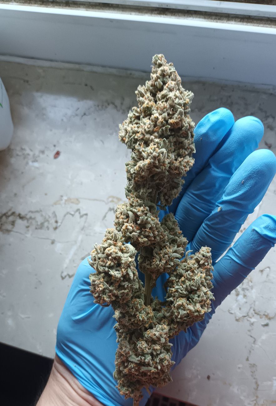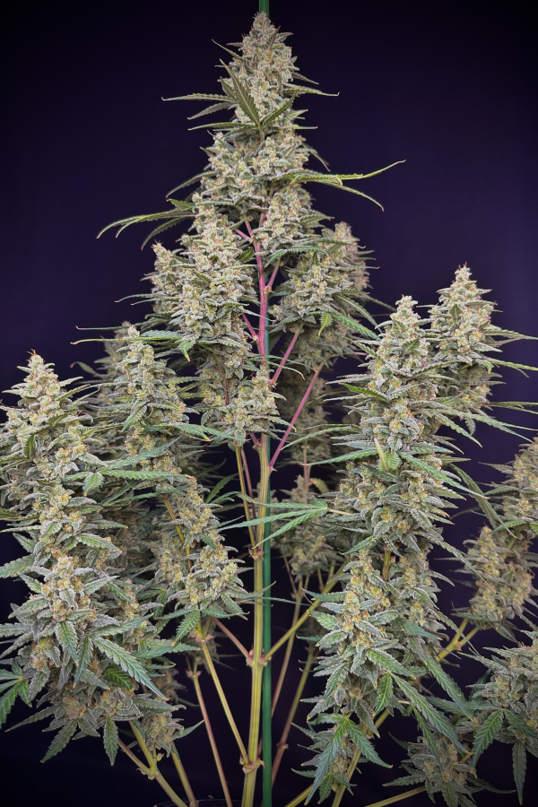 Freue dich auf einen fetten Main-Bud, der durchschnittlich 120 cm erreicht. Der Main-Bud ist fast nicht zu erkennen, da sich um ihn herum viele fast genauso fette Buds tummeln. Dieser buschige Strain, scheut sich nicht, seine hybride Wucht zu zeigen. Die großen Fächerblätter mit mehreren dünnen Adern wachsen aus jedem Internodium. Der besondere Look besteht aus golfballgroßen Buds, die nach oben spitz zulaufen. Ein außergewöhnlicher Ertragsbringer, der dich mit bis zu 550g/m2 an hochwertigen Buds belohnt. Perfekt für Extraktoren, die einen erstklassigen Harzproduzenten suchen.