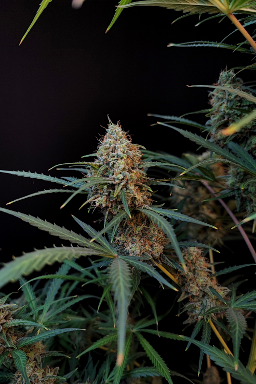 Über die langen und dichten Buds legen sich leuchtend orangene Härchen. Gegen Ende der Blütezeit vollendet die Pflanze ihre Buds mit einer Glasur aus Trichomen. Nach der Trocknung bekommen die Buds ihre feste Struktur.