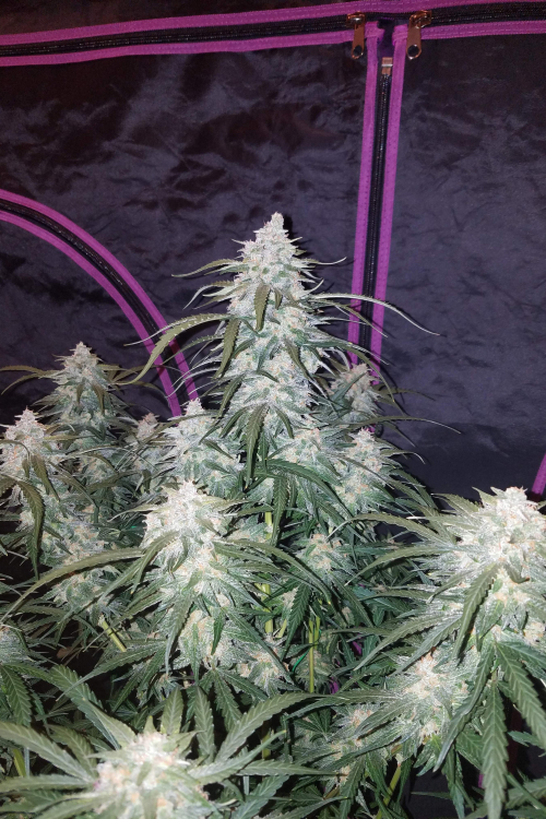 Eine lebhafte, sattgrüne und weihnachtsbaumähnliche Pflanze mit dichtem Budwuchs um den Stamm und die Zweige herum. Pineapple Express Auto wird hoch, manchmal bis zu 1,4 m! Wenn du also ihr volles Potenzial nutzen willst, solltest du ihr den Raum geben, den sie braucht. Die volle Reife kannst du um die 9. und 10. Woche herum erwarten.