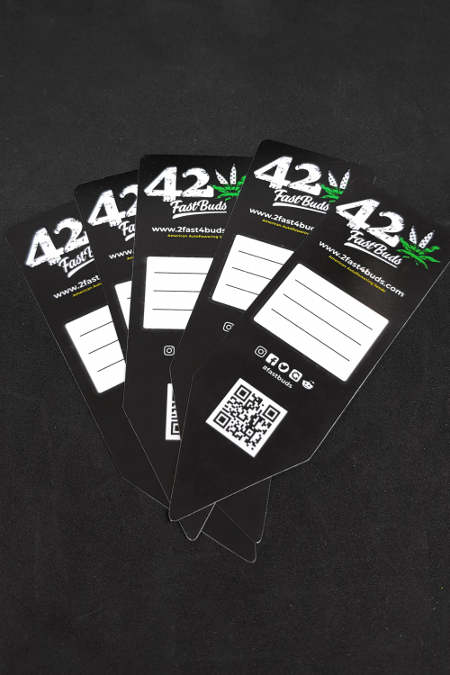 Nuestras etiquetas 420 para plantas vienen con viñetas en la parte delantera y trasera donde puedes escribir toda la información importante, como la fecha de germinación y el nombre de la variedad, y el emblemático logotipo de Fast Buds en la parte superior para que siempre recuerdes que estás cultivando las mejores autoflorecientes del mercado. Estas etiquetas 420 te ayudarán a identificar tus plantas desde la germinación y a lo largo de todas las etapas de crecimiento de la planta, incluso si estás cultivando varias cepas al mismo tiempo. No importa la técnica de cultivo que utilices o lo grande que sea tu espacio de cultivo, mantén tu jardín bajo control y debidamente etiquetado.