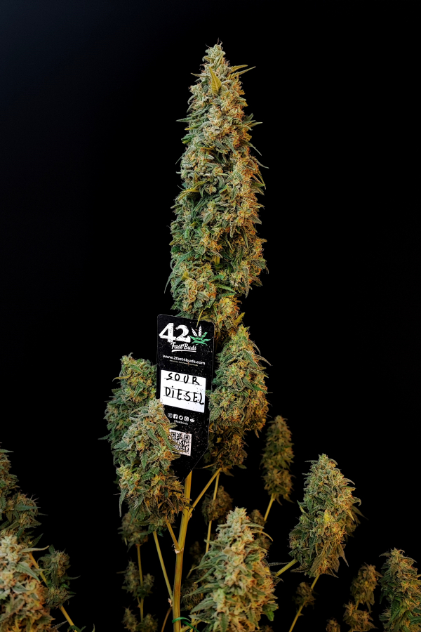 Puede alcanzar una altura de 120 cm debido a su influencia sativa, donde crecerá con un espacio internodal mediano y con muchas ramas laterales. Cuando florece, Sour Diesel Auto produce hasta 450-550 gr/m2 de grandes cogollos, lo que la convierte en una variedad autofloreciente de gran producción.