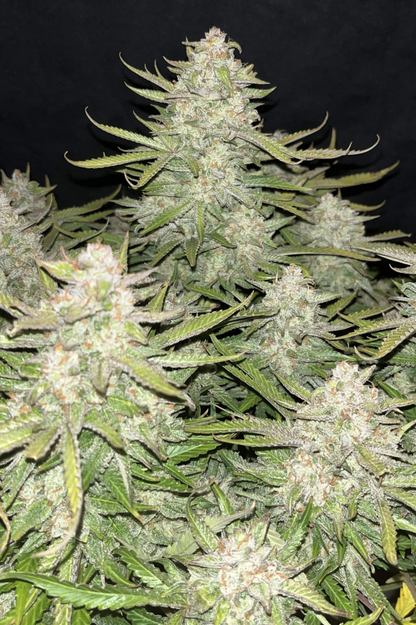 Esta cepa crece vigorosamente y mostrará claramente su herencia mixta. La cola principal crece alta, alcanzando hasta 150 cm seguidos de varias ramas laterales que permanecen cortas en comparación con la cola principal, pero igual crecen bastante y desarrollan múltiples puntos de floración que se cubren completamente de cogollos grasos de arriba a abajo. Esta variedad permanece compacta y, a pesar de su altura, mantendrá esa estructura típica de Indica hasta la cosecha, donde terminará luciendo como una Indica hermosa y atípicamente enorme.