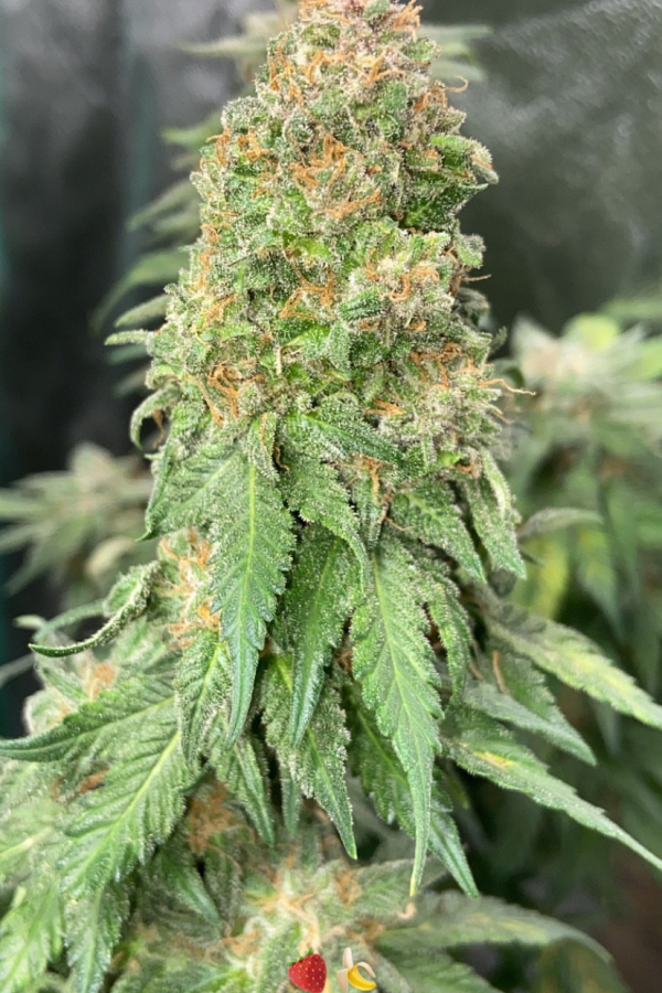 Asegúrate de tener suficiente espacio vertical en tu tienda de cultivo: esta variedad puede crecer hasta 150 cm, por lo que se recomienda que tu tienda tenga al menos 200 cm de altura para evitar problemas en las últimas semanas de tu ciclo de cultivo. Una vez que los cogollos empiecen a engordar, se volverán bastante pesados, así que presta mucha atención a las ramas y, si sientes que no podrán soportar el peso, usa soportes de plantas o estacas de bambú para brindar apoyo y evitar que se rompan. Los fuertes terpenos de fresa y plátano son muy evidentes, pero recuerda enjuagar bien para reforzar todavía más los potentes terpenos afrutados.