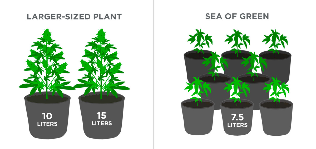 • Sea of Green nécessite un pot plus petit de 7,5 litres.
