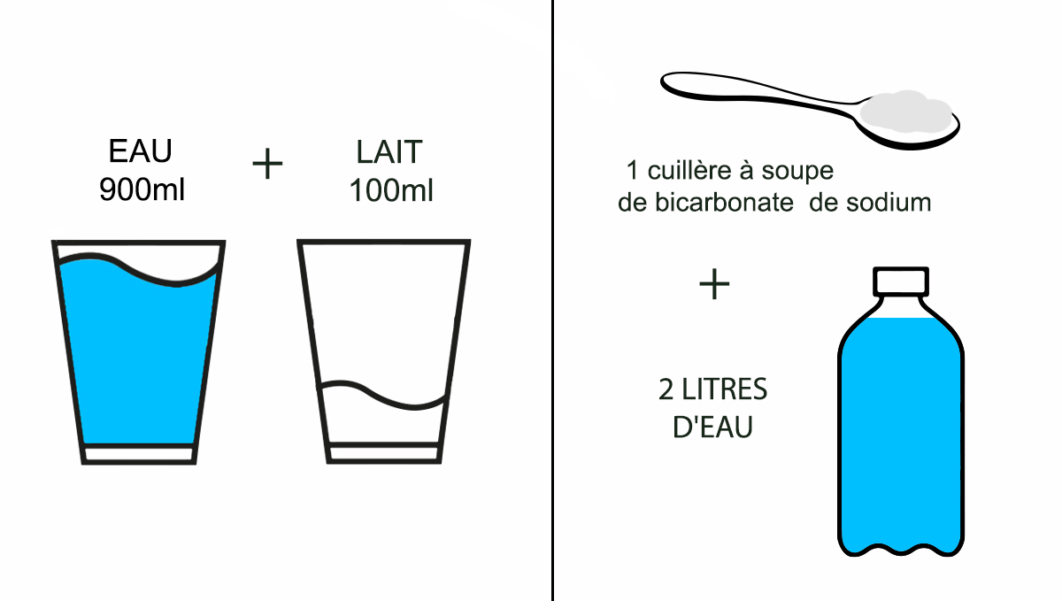 - Mélangez 1 cuillère à soupe de bicarbonate de soude avec 2 litres d'eau