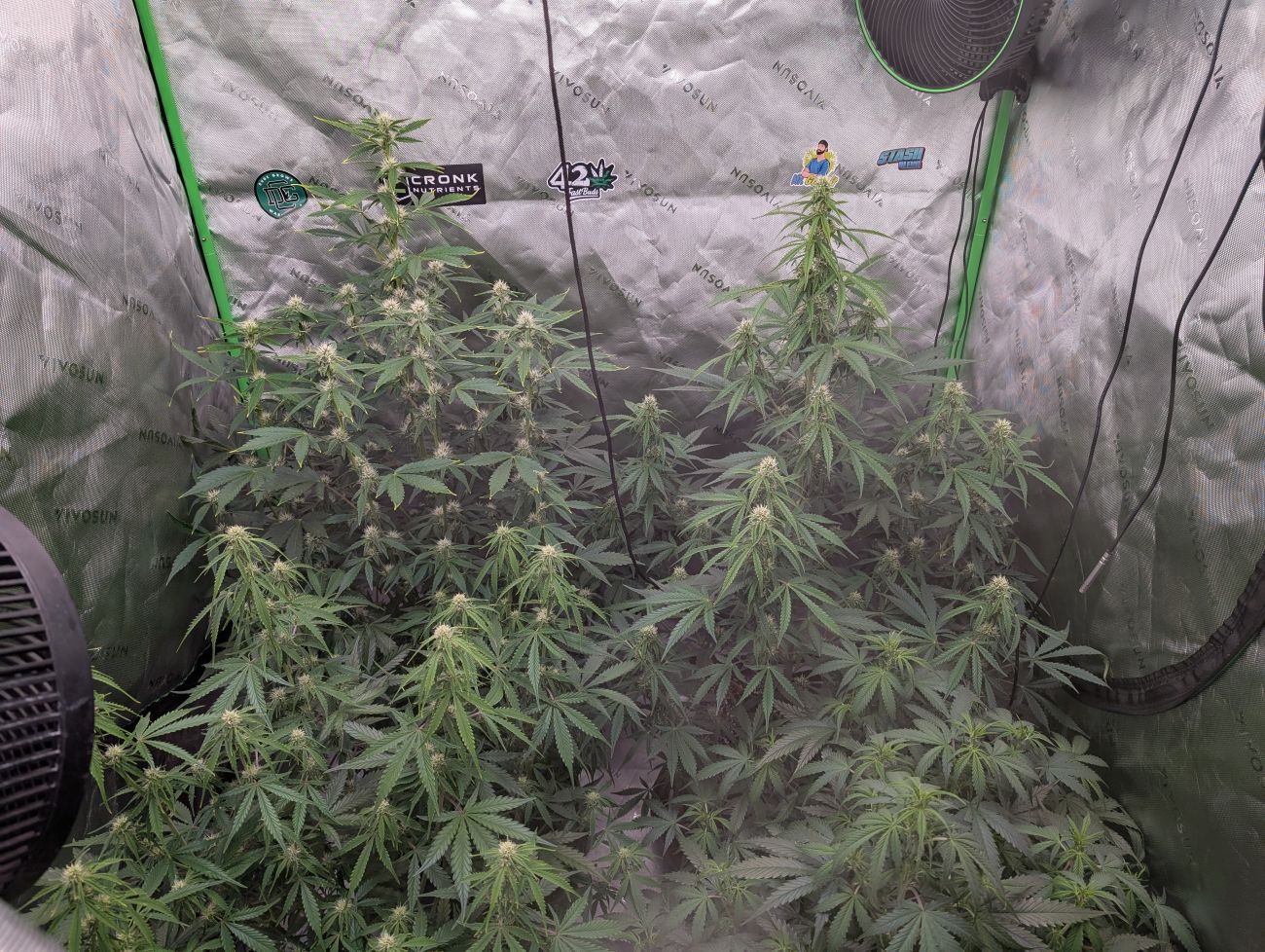 I am 6 weeks in a 4x4 Vivosun tent on 3 gorilla cookies and 1 godfather og. Using coco and Kronk nutrients. Looking healthy and happy. Using a Vivosun light vsfl 4300.