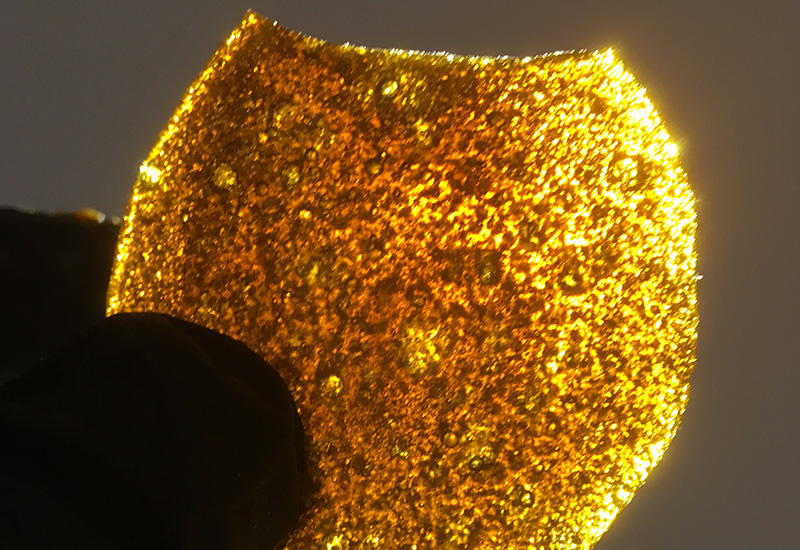 Если вы видите ярко-желтое вещество на пергаментной бумаге, поздравляю, вы извлекли смолу в домашних условиях! Используйте любой предмет с заостренным концом, чтобы собрать клейкий материал.
