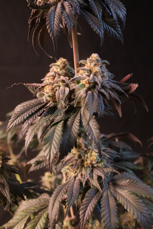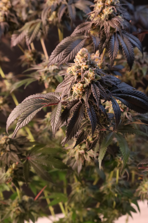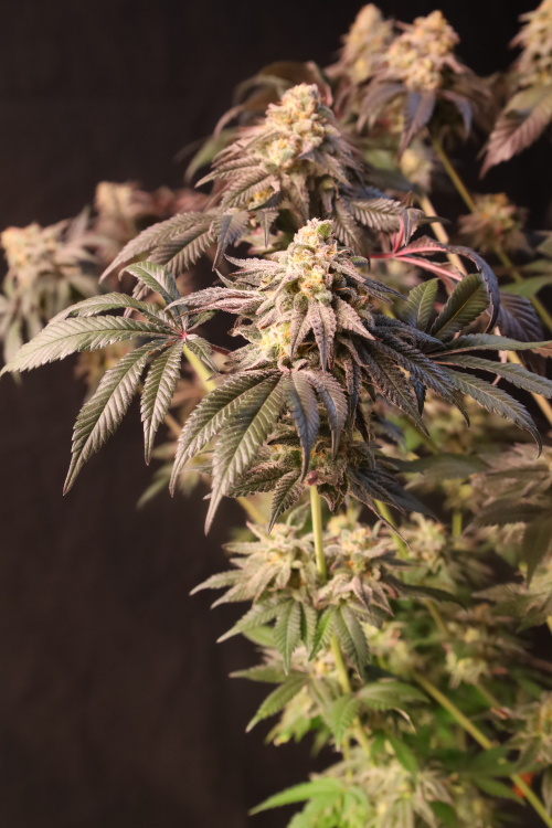 Papayton grows into a balanced, high-performing plant with strong lateral branching that rivals the central cola in both size, bud production and density. Her Christmas tree-like structure makes her ideal for optimizing grow space and boosting total yield potential, but make sure to provide her proper aeration throughout the whole cycle. As flowering progresses, the plant reveals a striking range of leaf colors—from deep green to nearly black—especially under cooler finishing conditions.