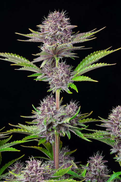 Due to the Indica dominancy, this strain remains relatively compact despite its height and grows wide and thick fan leaves typical of Indica-dominant varieties. You can expect a thick tall main cola and a few shorter side branches with spaced-out internodes where the incredibly frostbitten flowers develop and end up looking like buds on steroids by the end of the flowering stage.