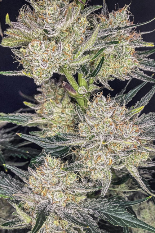 Expect extremely vigorous plants with chunky resin-coated buds. Strawberry Gorilla Auto develops medium-sized fan leaves and a typical Christmas tree structure, with a tall main cola and several long side branches that can handle the huge buds effortlessly. Thanks to the exquisite genetic selection, the buds produce very small sugar leaves, making your trimming as easy as possible while leaving resin to grow where it really matters: the buds.