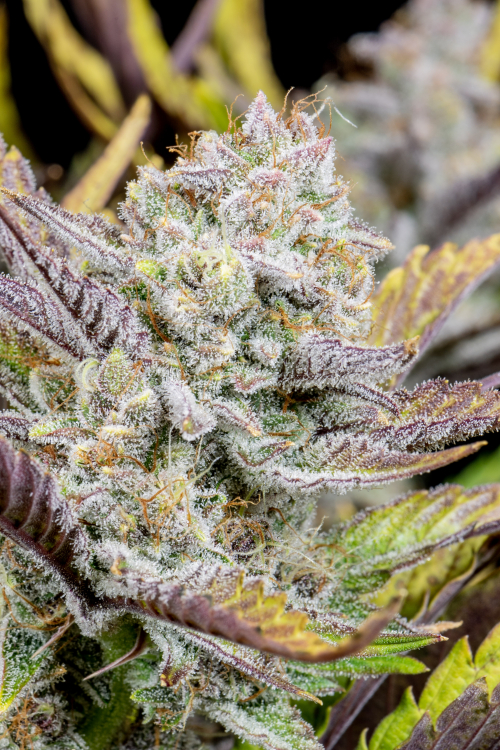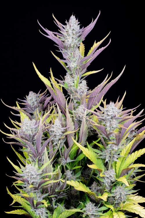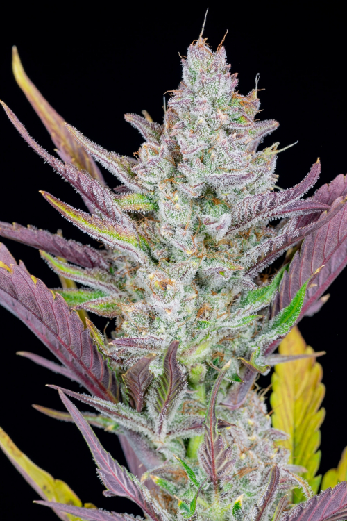This super-producer can yield up to 550gr/m2 in 9-10 weeks and grows on the taller side, develops a main cola that reaches 120cm while being surrounded by sturdy long side branches that grow close together and give it a compact appearance despite its height. Due to the well-balanced mix, this variety develops a bushy foliage that can show a purple tint from early on and multiple flowering sites where the super frosty and dense ping pong-sized buds develop. It’s the perfect choice for extractors seeking first-class strains that offer unconventional yet captivating terpene profiles strains while delivering both in resin quality and quantity.