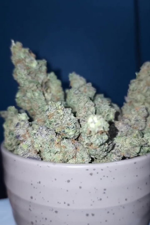 Kukinnot kasvavat tiheämmin kuin useimpiin Indica-dominantteihin hybrideihin, ne kehittävät lähes terävän, keihään muotoisen ulkonäön ja turvonneet verhiöt, joiden ympärillä on muutama ohut vaaleanoranssi karva ja budeissa paksu hartsikerros, joka antaa niille valko-vihreän värin. Näet paljon sokerilehtiä joissa on kasoittain trikomeja, joka antaa sinulle käsityksen siitä, mitä odottaa jopa ennen sadonkorjuuta, mikä tarkoittaa, että tämä lajike iskee kovaa ja se sopii kaikkein vaativimmille kuluttajille.